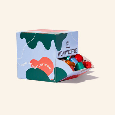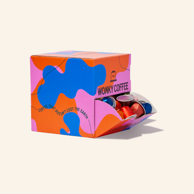 Choose between rescued Nespresso Compatible Pods, Freshly Roasted Whole Bean or Spectacularly Wonky Ground Coffee.